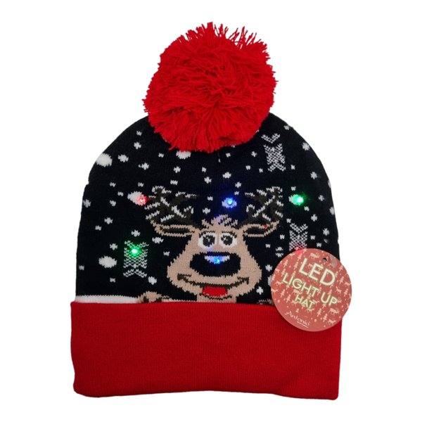 Vrolijke kerstmutsen met pluim voor in de winter en voor de mensen die heel erg van kerst houden. Tegenwoordig zijn "gekke" kerst outfits niet meer weg te denken tijdens de feestdagen. Hoe leuk is het dan om er ook nog een kerstmuts bij te dragen. En dit is niet zomaar een kerstmuts. Deze muts bevat LED lampjes met verschillende kleurtjes. Je kan de lampjes instellen in 3 verschillende standen (continu aan, knipperend, snel knipperend). Leuk voor als je bijvoorbeeld sochtens of savonds in het donker op de fiets zit en ze zijn nog warm ook. Eenvoudig te bedienen met een knopje in de rand van de muts.